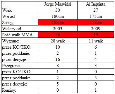 Jako pierwszemu przyjrzymy się pojedynkowi w wadze lekkiej, w którym zmierzą się sąsiadujący ze sobą w rankingu UFC Jorge Masvidal i Al Iaquinta.