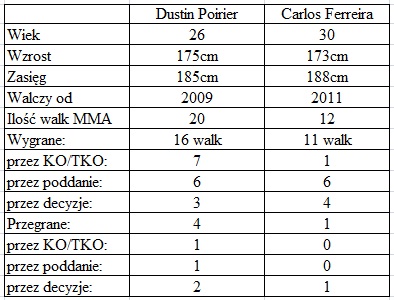 Zostajemy w wadze lekkiej i jako kolejnej przyjrzymy się walce otwierającej kartę główną: Dustin Poirier vs. Carlos Ferreira.